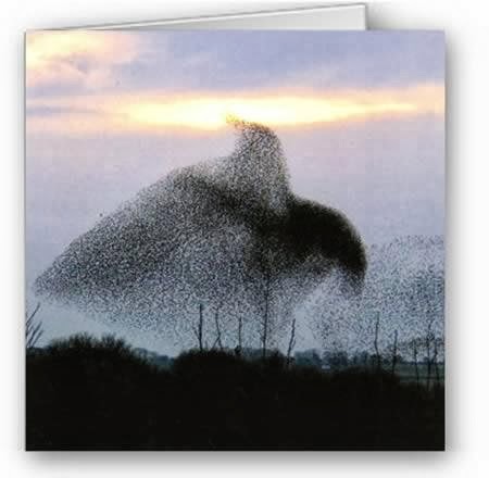 At first glance this incredible picture may look like one huge bird hovering in the sky, but the amazing outline is actually formed by a flock of starlings. The birds made the unbelievable formation as they came under threat from a nearby peregrine falcon. Once the flock had spotted the predator they grouped together to mimic the appearance of a massive flying creature.